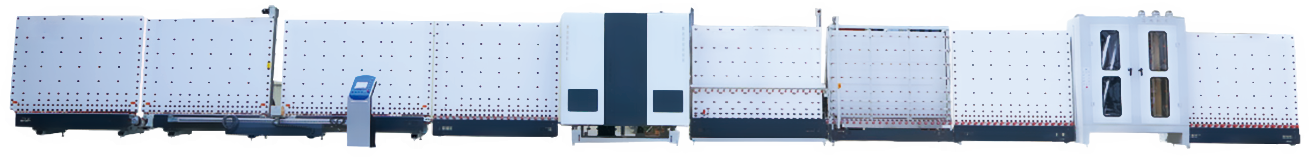 自動數控中空玻璃生產線(可生產LOW-E中空玻璃) 清洗機采用3對毛刷設計及對LOW-E玻璃專用毛刷避免膜損傷。 -